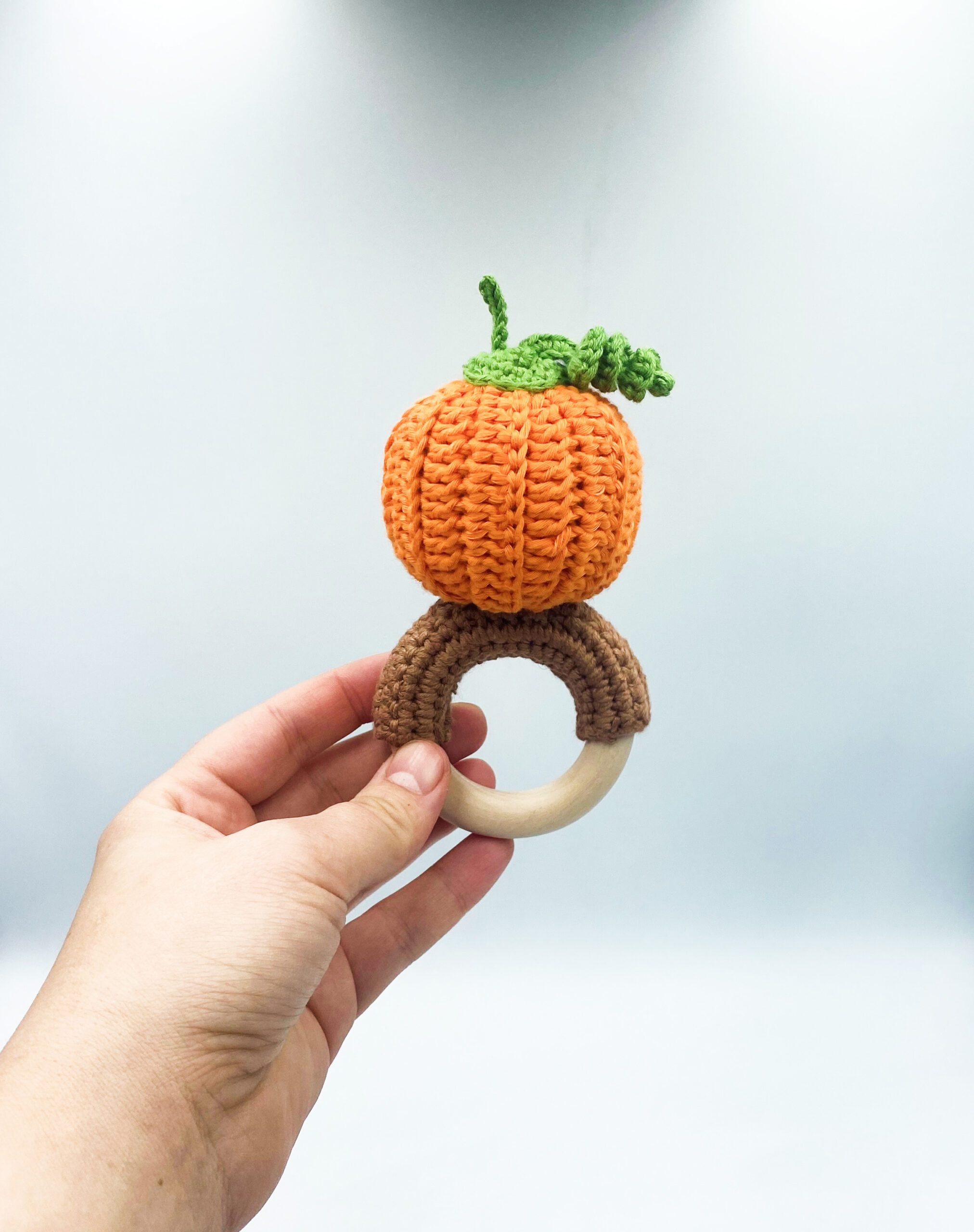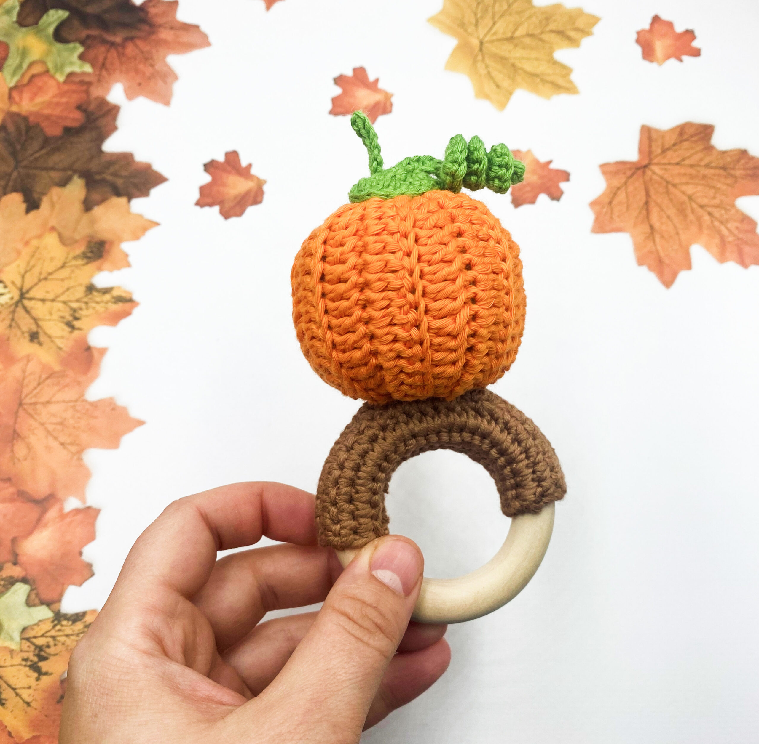 Pumpkin rattle Teether pumpkin Cotton baby rattle Pumpkin toy Expecting mom gift New mom gift Baby cotton rattle